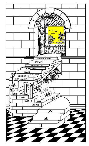 We advance in life as if we were climbing a winding stair. We cannot see too far ahead. Our progress requires courage to press on as we grow and mature. We first encounter the three steps in Masonry. Next, we master our five senses as we observe our world. And we climb the steps of the seven liberal arts and sciences. Likewise, education is a process of steps up a winding stair. First grade teaches us to read and write simple ideas. We progress up the steps of schooling to abstract concepts and ideas. There must be many fields of knowledge that could have been listed: history, chemistry, or literature. Yet this list is commended to our consideration. Why "grammar"? Why "rhetoric"? We may well ask, "Why this list and not others?" A History of the ListThe phrase, the liberal arts, comes from the Latin artes liberales. Liber is translated both as Free and Book. Much of the well-educated in antiquity disliked work. If you were indentured as an apprentice, you were not free to study what you wanted. You had to do what was assigned to you. The artes illiberales were vocational studies aimed for an economic purpose, such as a being a stonemason. So it is intriguing that speculative Masonry encourages us to study the liberal arts and sciences. The history of the seven liberal arts and sciences is intricate, but chiefly Pythagoras, Plato, and St. Augustine play key roles in framing it.